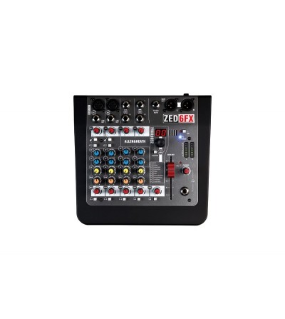 ZED-6FX es el primer mezclador que incluye una suite especialmente creada de reverbs con calidad de estudio, retardos y FX especiales multi modo, creados por los expertos del equipo de Allen & Heath. Los guitarristas encontrarán especialmente interesantes las dos entradas DI de alta impedancia para guitarra que incorpora ZED-6FX, que permite que las guitarras puedan ser conectadas directamente al mezclador sin necesidad de contar con las caras cajas DI externas.